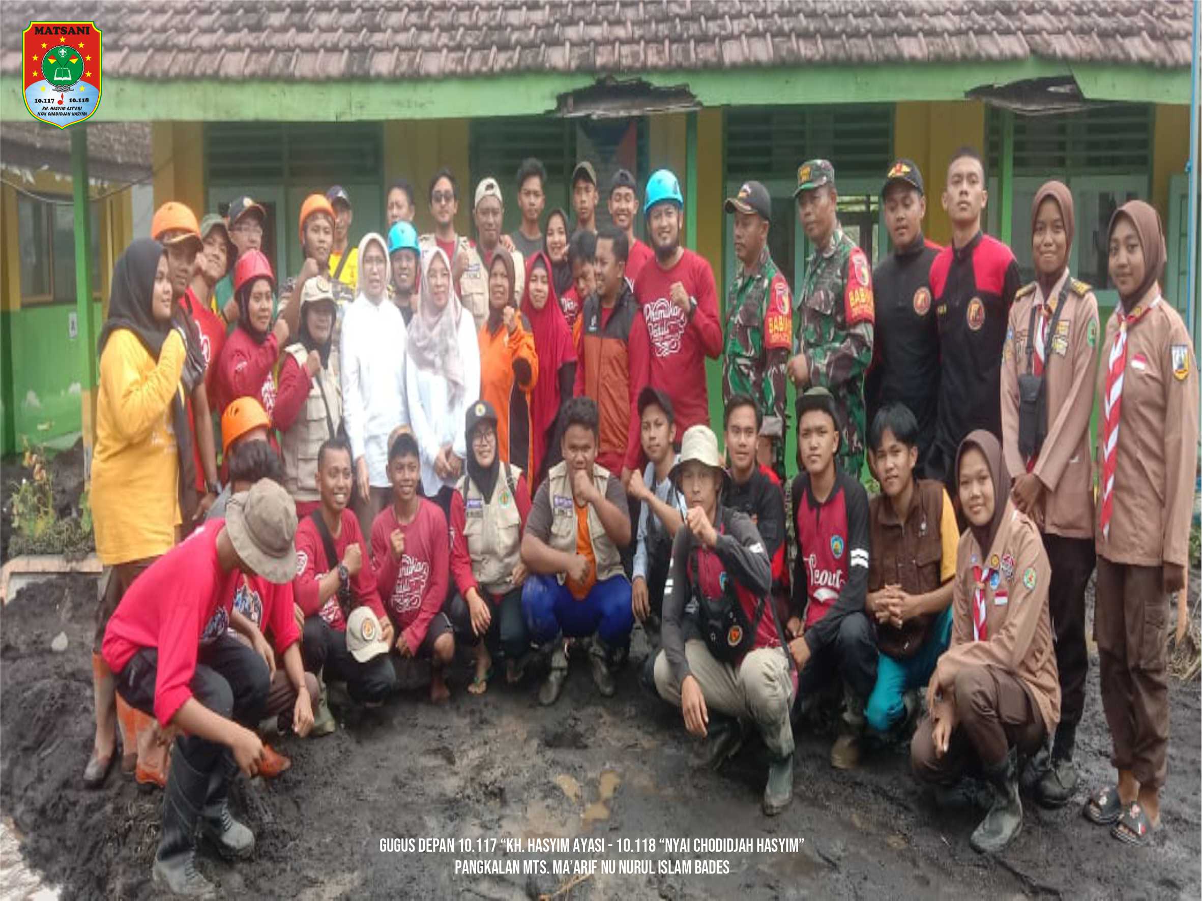 Minggu (09/07/2023). Gugus depan 10.117 "Kh. Hasyim Asyari" - 10.118 "Nyai Chodidjah Hasyim" Pangkalan MTs. Ma'arif NU Nurul islam Bades ikut serta dalam rangka Bakti sosial terhadap masyarakat yang terdampak banjir lahar dingin di Kaliputih desa Nguter Kecamatan Pasirian. dalam kegiatan tersebut Gugus depan 10.117 "Kh. Hasyim Asyari" - 10.118 "Nyai Chodidjah Hasyim" Pangkalan MTs. Ma'arif NU Nurul islam Bades berpartisipasi membersihkan Rumah warga dan beberapa Fasilitas Umum yang terdampak lahar dingin.