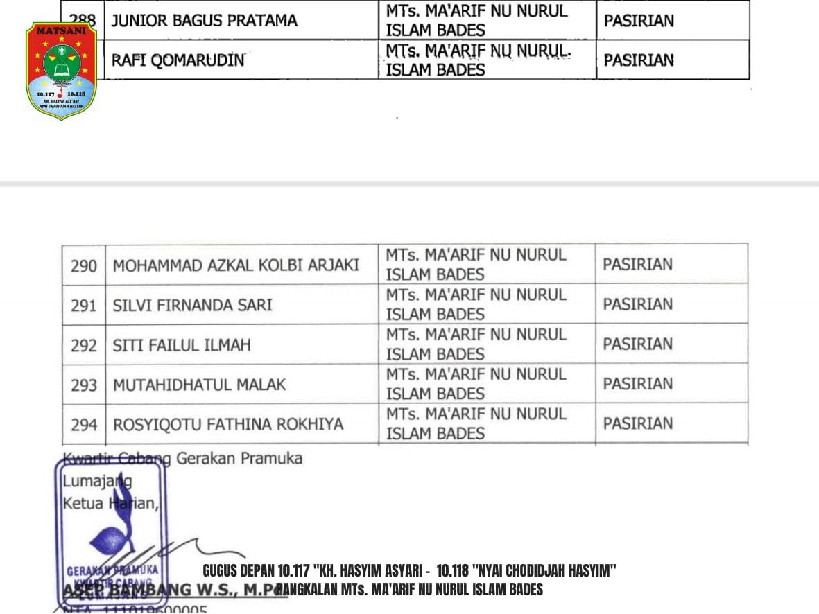Syukur alhamdulilah pada hari Selasa, 10 Oktober 2023 Gugus depan 10.117 "KH. HASYIM ASYARI dan 10.118 "NYAI CHODIDJAH HASYIM" Mendapatkan kabar Gembira tentang Hasil Penilaian Administrasi Calon Pramuka Garuda Tahun 2023 yang di keluarkan oleh Gerakan Pramuka Lumajang.