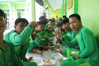 Untuk kegiatan ini di pisah antara satuan putra dan putri. Anggota putra kegiatan makan bersamanya ditaruh di depan kelas masing-masing, sedangkan anggota putri di taruh di depan ruang kantor guru, kepala dan TU. Kegiatan ini peserta di intruksikan untuk membawa bekal sendiri sendiri dengan menu lauk terdiri dari Lauk yang mengandung lauk Hewani, ada nasi, ada sayur, ada buah dan air mineral.