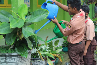 Dengan beberapa langkah pelestarianya yaitu ada yang membantu menyapu halaman guguadepan, ada yang mengangkat/manyangkut di selokan depan kelas entah itu pasir yang menumpuk atau barang lainya yang bisa mengganggu sirkulasi jalanya air, ada juga yang membantu membuang sampah, ada juga yang mengingatkan teman kalau membuang sampah sembarangan dan ada juga yang menyirami bunga-bunga yang ada di gugusdepan biar terlihat segar sepanjang hari.