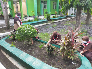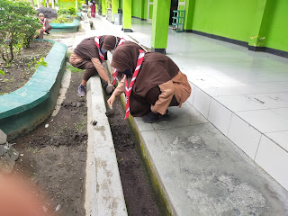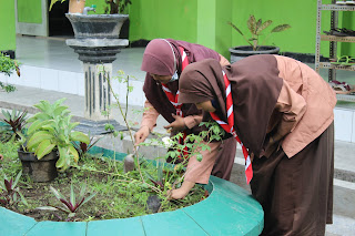 Dengan beberapa langkah pelestarianya yaitu ada yang membantu menyapu halaman guguadepan, ada yang mengangkat/manyangkut di selokan depan kelas entah itu pasir yang menumpuk atau barang lainya yang bisa mengganggu sirkulasi jalanya air, ada juga yang membantu membuang sampah, ada juga yang mengingatkan teman kalau membuang sampah sembarangan dan ada juga yang menyirami bunga-bunga yang ada di gugusdepan biar terlihat segar sepanjang hari.